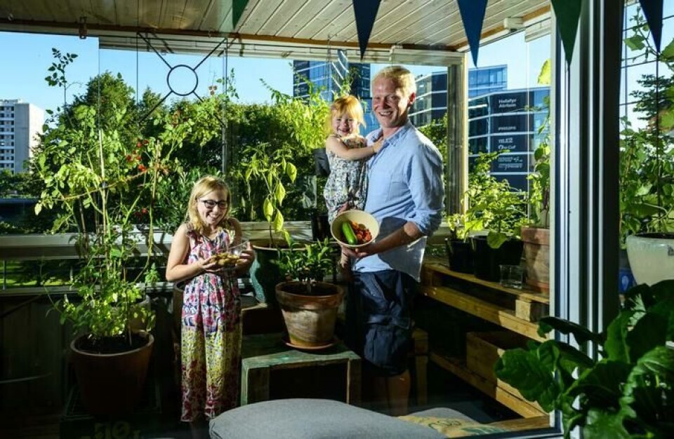 – Det at balkongen er innglasset gjør at jeg egentlig har et drivhus her oppe. Jeg synes det vokser bra her, har alltid fått god avling, forteller han.