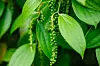 Pepperet kommer fra planten Piper nigrum. I pepperplantasjer vokser planten på stolper. Bærene henger i aks.